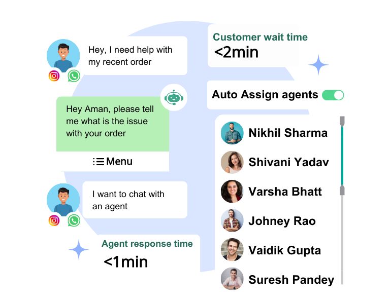 Automate the routing of chats to multiple agents on WhatsApp for unanswered queries.