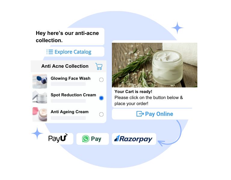 Display your WhatsApp Catalog directly on WhatsApp and seamlessly process payments using WhatsApp Pay.
